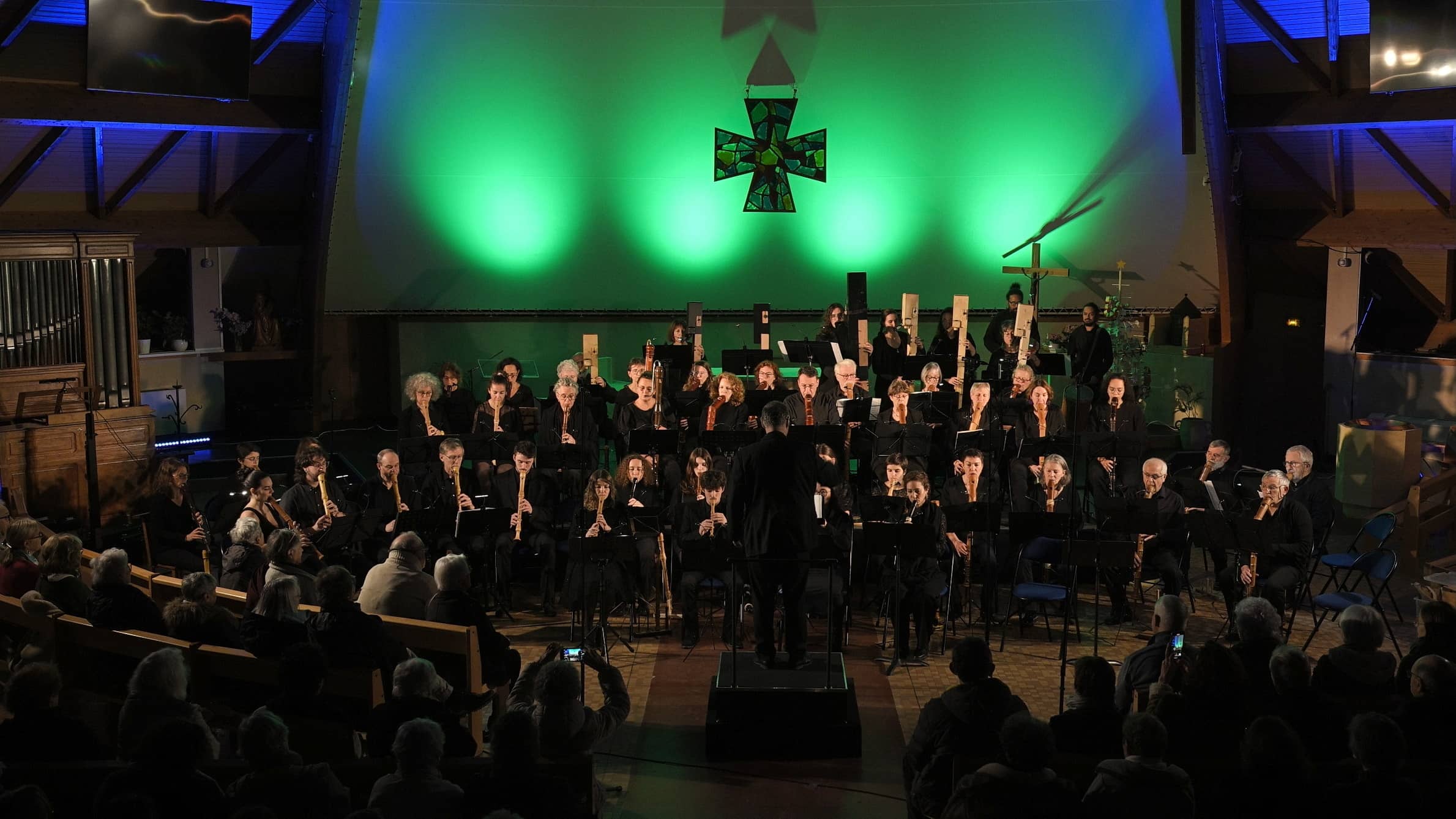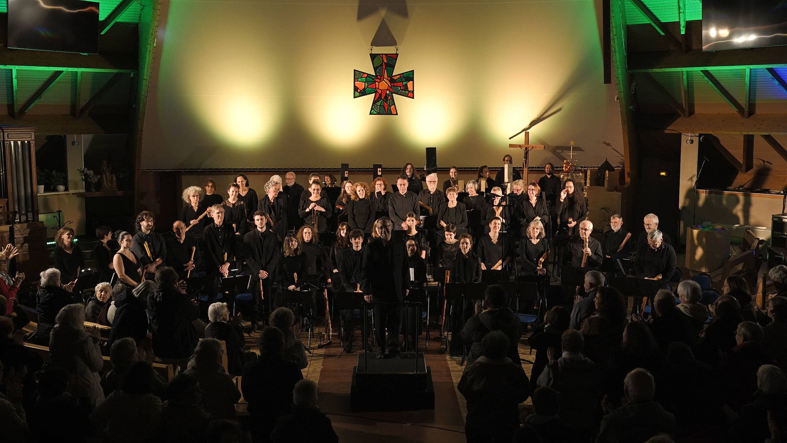 L’église Saint Gilles d’Avrillé a accueilli un public très nombreux ce dimanche 14 décembre. L’Atlantic Chamber Orchestra (ARO) a débuté et terminé le concert avec le magnifique lever du soleil de Corinna Rosin après plusieurs « bis ». « Vous êtes gourmands, Avrillé!! » a dit le chef d’orchestre Frédéric Jubault à l’issue de ce moment musical inédit.